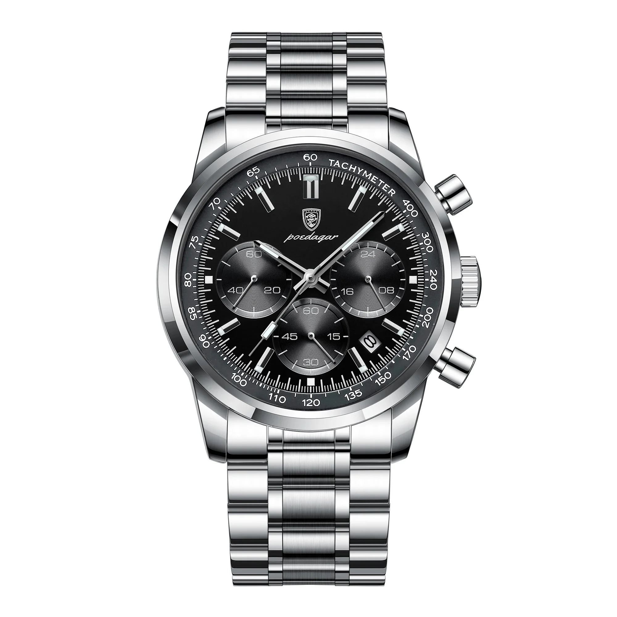 - Features: Date Calendar, Chronograph, Luminous